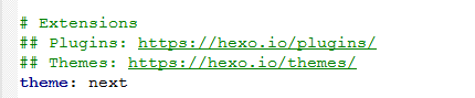 然后打开hexo的配置文件,将theme: 项改为next,记住之后所有的配置中冒号后边都先有空格:Next主题相关配置/next.png)