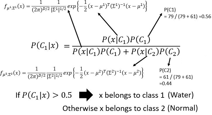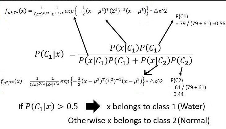 我们需要找到一个 f ,把 x 输入即可输出 x 属于哪一类,Class1 ( Water) 还是 Class2 ( Normal )