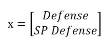 为了问题的简单化,我们假设神奇宝贝的 attack_strong_type 只有两类,一种是 Normal,一种是 Water。我们先选取它的两组属性 Defense 和 SP Defence(图中未显示) 来预测它是属于 Normal 还是 Water。也就是说每一个个体可以由一个向量表示: