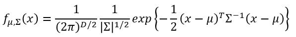 如果 x 是 n 维向量,那么D = n ( 相当于常量 ), $\mu$ 是 n 维向量, $\Sigma$ 是 n × n 矩阵。