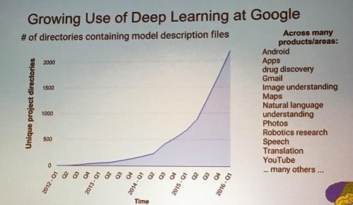 谷歌中用到了深度学习技术的项目数目,现在是真的火呀!